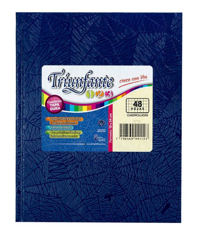 CUADERNO TRIUNFANTE 123 x 48 HOJAS AZUL CUADRO GRANDE