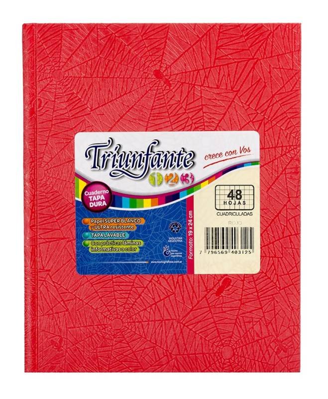 CUADERNO TRIUNFANTE 123 x 48 HOJAS ROJO CUADRO GRANDE
