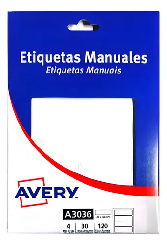 Las etiquetas Avery A3020 son especialmente prácticas para el etiquetado manual de objetos pequeños, precios, envases o señalética. Cada etiqueta mide aproximadamente 9 × 48 mm, ofreciendo una superficie eficiente para escritura manual con adhesivo permanente. Se presentan en hojas A4, con 22 etiquetas por hoja y un paquete estándar de 30 hojas (660 etiquetas por caja). Son ideales para comercios, escuelas o uso hogareño, gracias a su adhesión fuerte y material resistente, sin necesidad de impresoras o diseños complejos.