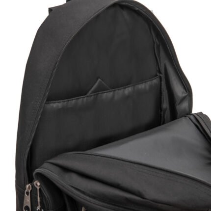 Cuenta con dos compartimentos principales amplios, ideales para carpetas, cuadernos grandes, libros o incluso una notebook. Incluye además bolsillo frontal con cierre, perfecto para accesorios y objetos de acceso rápido. Los bolsillos laterales porta botellas, junto a la espalda y correas acolchadas, garantizan comodidad durante todo el día. Es una mochila robusta, práctica y preparada para un uso intensivo.