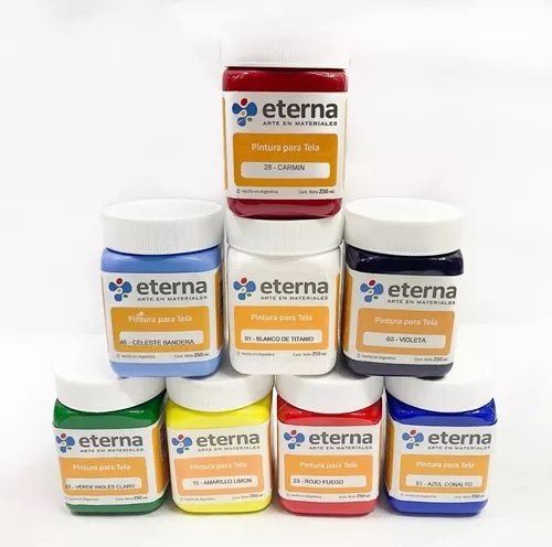 La Pintura para Tela Eterna – color Verde Inglés Claro (código 62) es una pintura al agua especialmente formulada para telas con alto contenido de algodón o cuero natural. Gracias a su composición en resinas acrílicas flexibles, ofrece una excelente cobertura sin endurecer la tela, preservando su textura natural. Es apta para ser aplicada con pincel, esponja o aerógrafo (diluida al 50 %), y no requiere fijación térmica. Se recomienda lavar la tela antes de pintar y dejar secar al menos 72 horas antes de lavar con jabón suave sin comprometer la durabilidad del color