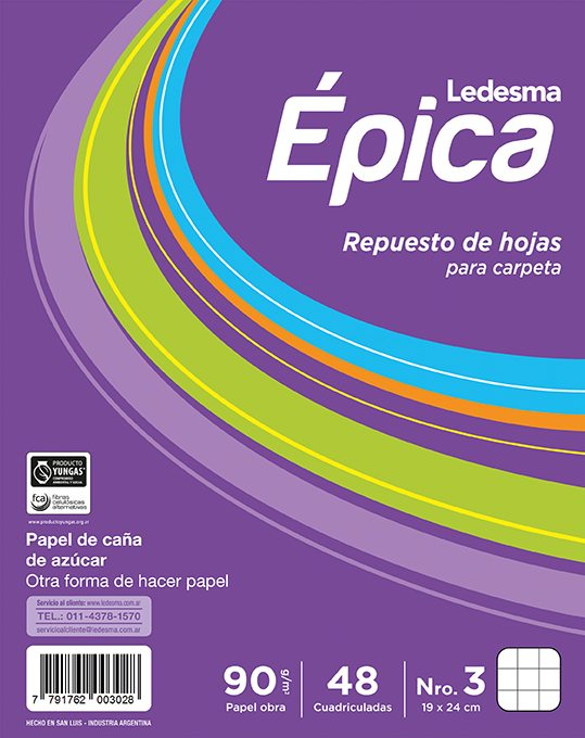 El Repuesto Épica de 90 gramos x 48 hojas cuadriculadas es ideal para uso escolar y académico, especialmente para materias que requieren prolijidad y organización como matemática, física o contabilidad. Sus hojas de 90 g/m² ofrecen mayor resistencia y calidad, permitiendo escribir con lápiz, birome o marcador sin traspaso excesivo.