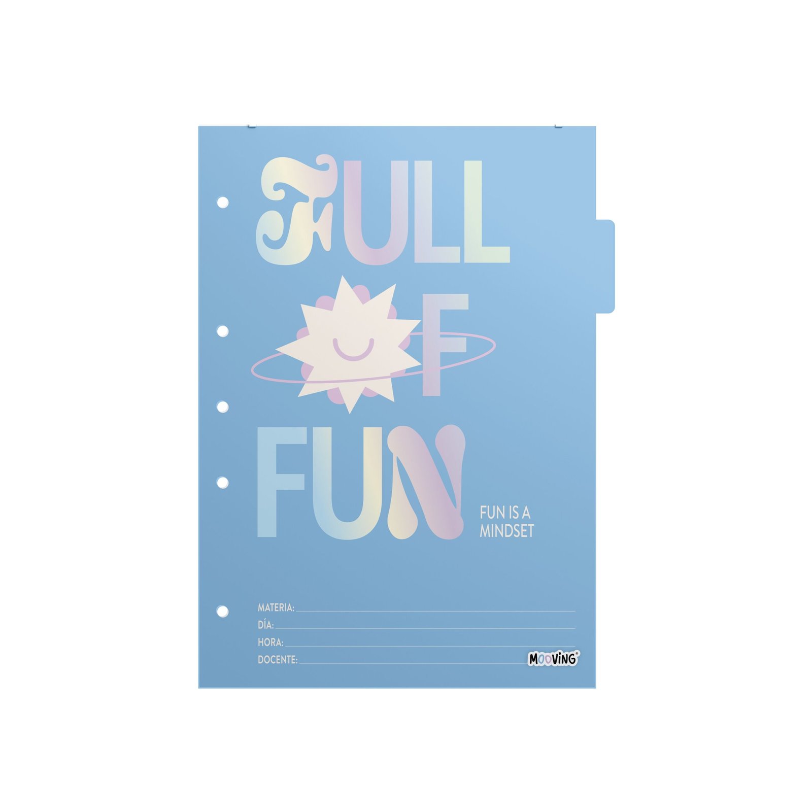 Organizá tus carpetas escolares de manera práctica y colorida con los Separadores de Materia Mooving Nº 3. Diseñados especialmente para carpetas escolares formato Nº3 (19 x 24 cm), estos separadores permiten clasificar y dividir tus hojas por materias o secciones, facilitando el estudio y la organización diaria.